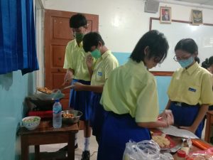 Proses pembelajaran kelas VIII mengenal dan mengolah hasil laut. Nilai yang dihidupi antara lain adalah kebersyukuran, kerjasama, kekompakan, kreatifitas, kepedulian, dan kedisiplinan.*hrpmm